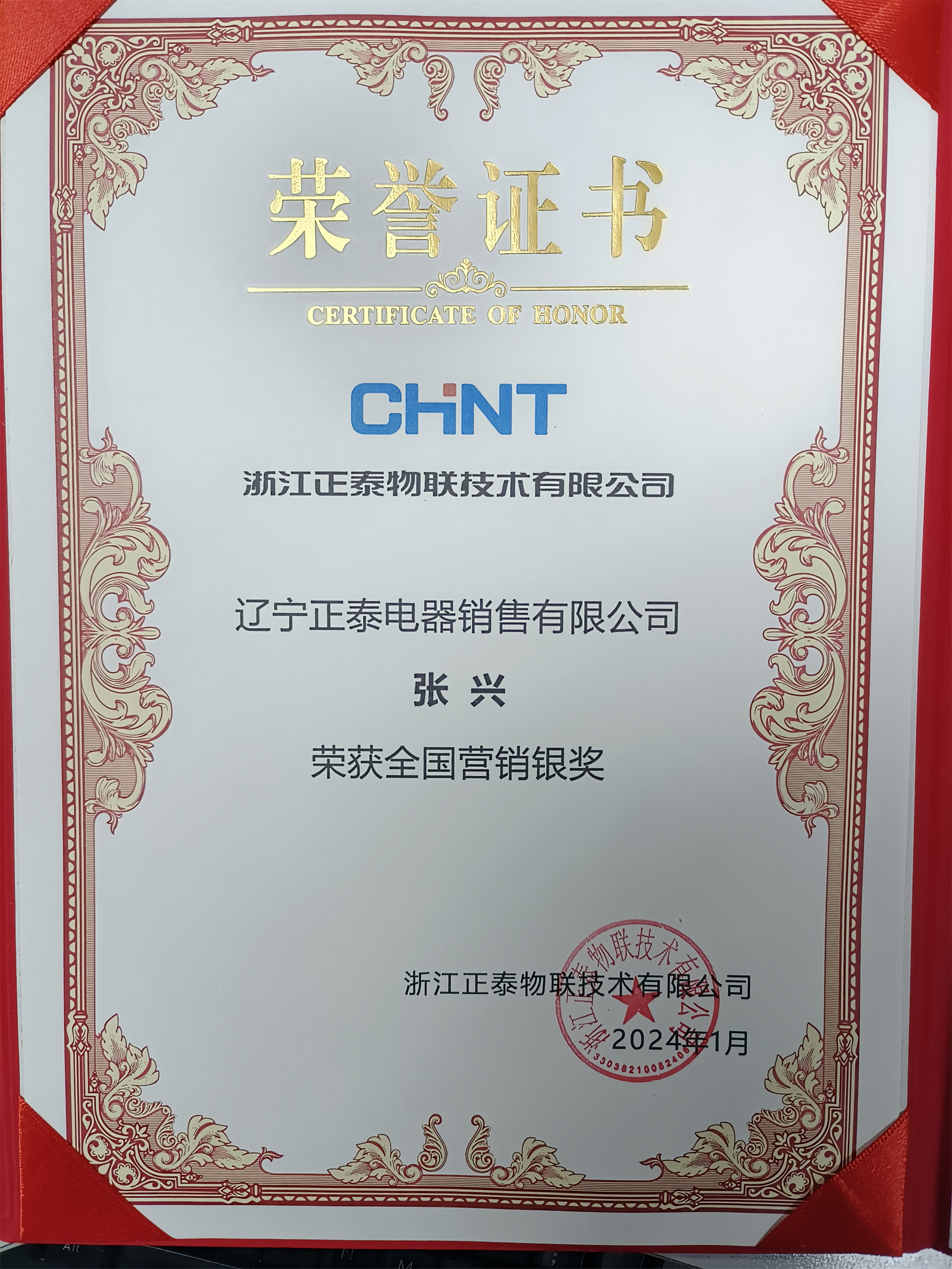 榮獲浙江正泰物聯(lián)技術(shù)有限公司全國(guó)營(yíng)銷(xiāo)銀獎(jiǎng)